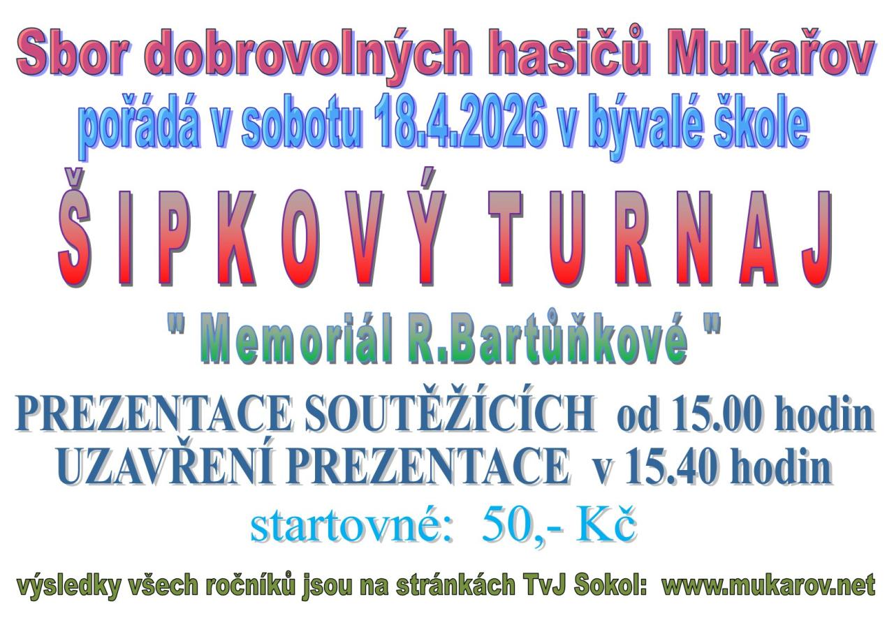 Sbor dobrovolných hasičů Mukařov pořádá tradiční šipkový turnaj.