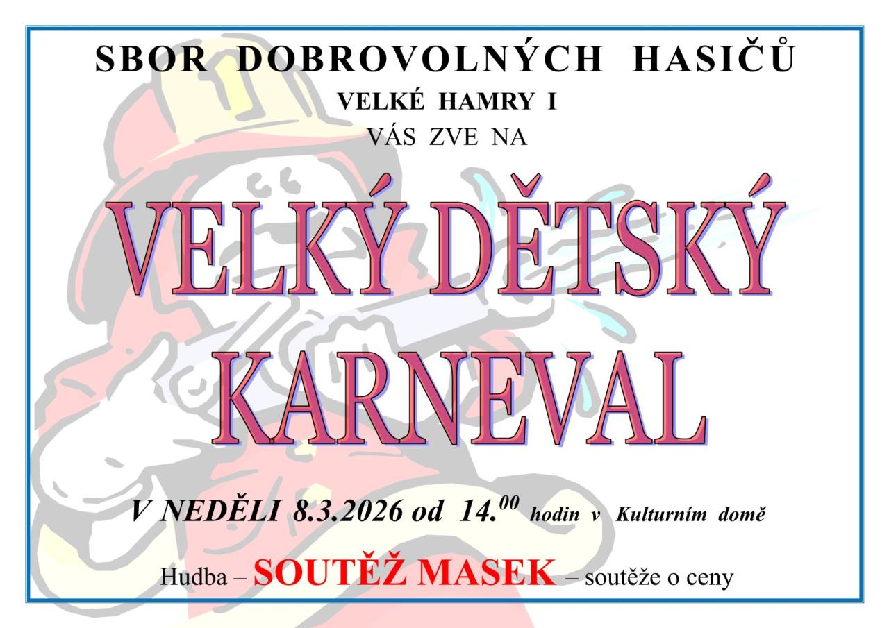 V neděli 8.3.2026 od 14 hodin v KD Velké Hamry.