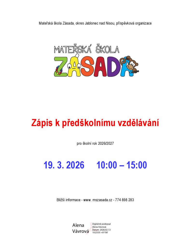 Zápis k předškolnímu vzdělávání